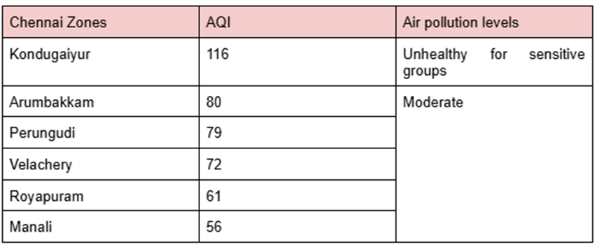 Table 1: AQI index of the most polluted regions in Chennai in 2024-2025. According to data collected by CAG.