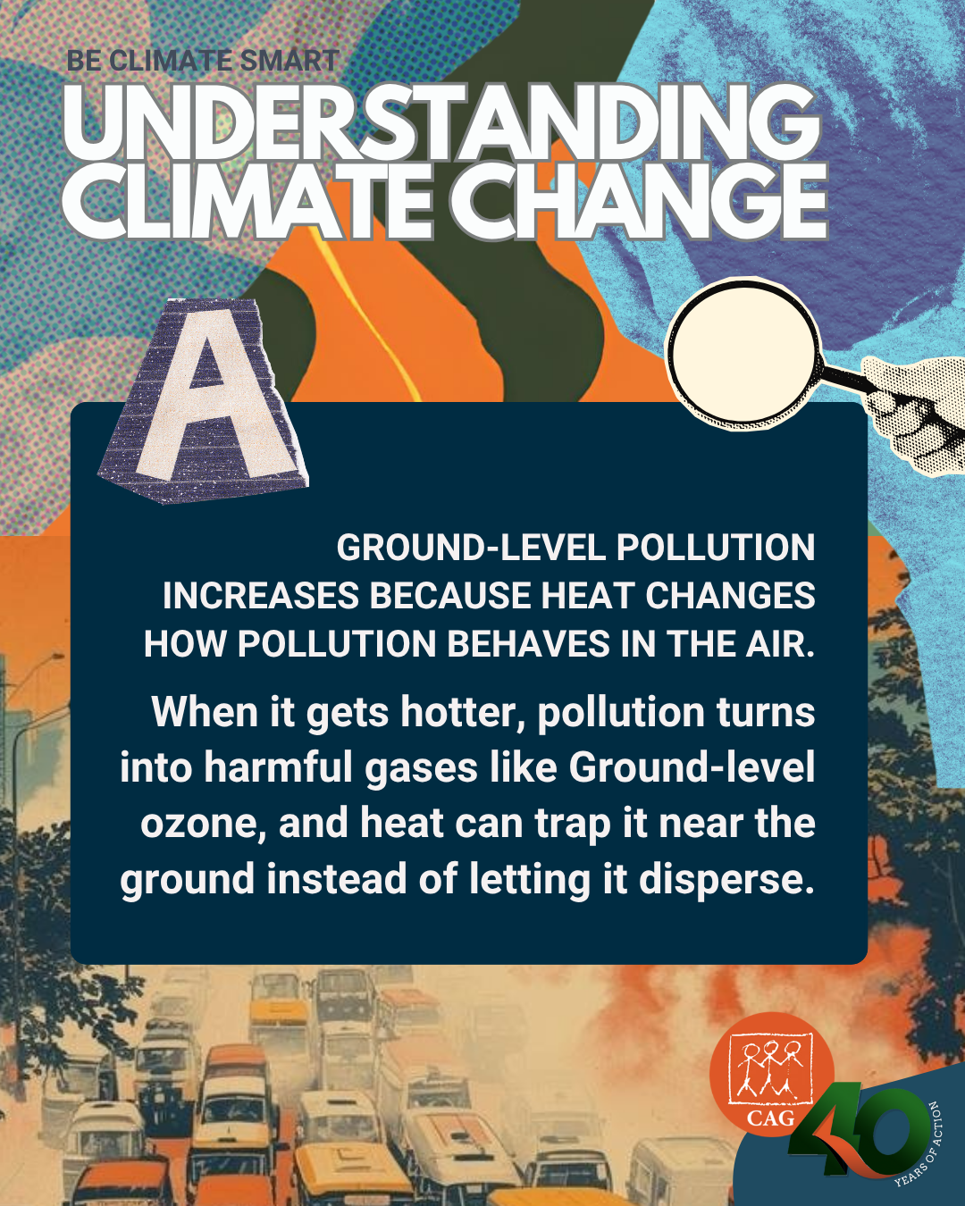 As temperatures rise, pollution doesn’t just increase, it becomes more harmful. Heat and sunlight can turn everyday emissions into gases like Ground-level ozone, while trapping them closer to where we live and breathe.