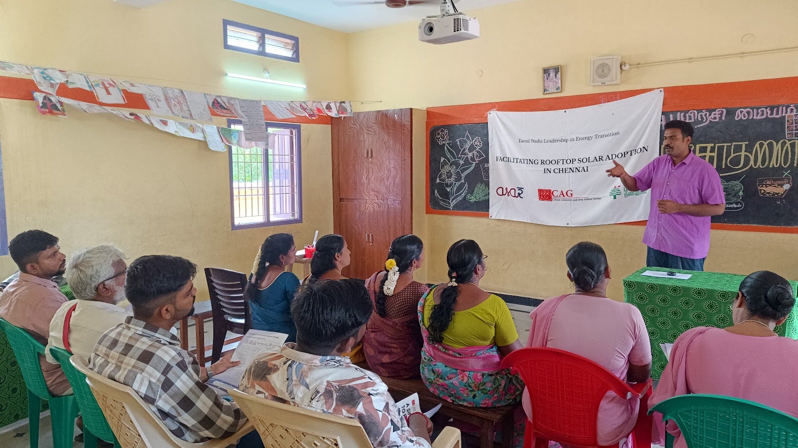 Citizen consumer and civic Action Group (CAG), in collaboration SRDS Undu Uraivida Palli, organised a Rooftop Solar awareness workshop on Friday , September 12, 2025,at SRDS Undu Uraivida Palli, Kattur. The event took place from 11:00 AM to 1:00 PM, and was attended by staff of SRDS Undu Uraivida Palli and residents from Kattur.