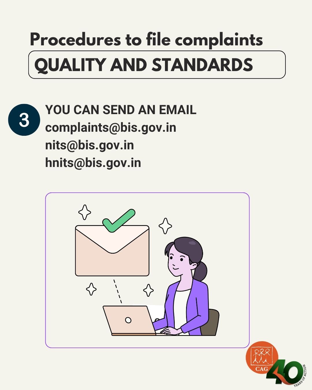 You can complain to the BIS about a range of issues related to BIS-certified products and services. This includes substandard or falsely certified products, problems with hallmarking (gold/silver purity), misuse or unauthorized use of the BIS Standard Mark, misleading advertisements and delays or irregularities in BIS processes such as licensing or testing. #BeAnAwareConsumer and help the BIS ensure that products and services bearing the BIS mark truly meet trustworthy standards.
