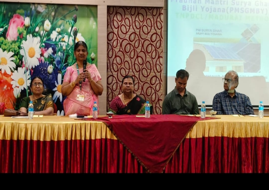 Mrs. Regina Rajakumari, Superintending Engineer, Tamil Nadu Power Distribution Corporation Limited (TNPDCL), discussed the advantages of utilising solar energy, particularly in terms of energy conservation and financial savings. She outlined the various roles and responsibilities of the TNPDCL in Rooftop Solar installations, shedding light on how they facilitate this process. She also stated that TNPDCL plans to install rooftop solar systems totalling 27,000 kW in Madurai district by 2027, with a specific focus on residential buildings. Officials said households consuming 500–1,000 units per billing cycle stand to benefit the most, as solar can cut power charges and help meet growing demand without adding new conventional power generation. Households can install systems up to 3 kW and claim a subsidy of up to ₹78,000, with TNPDCL expediting on-grid approvals. She said 70,000 of the six lakh electricity consumers in Madurai district were identified to be using 500 to 1,000 units of power per bill cycle.