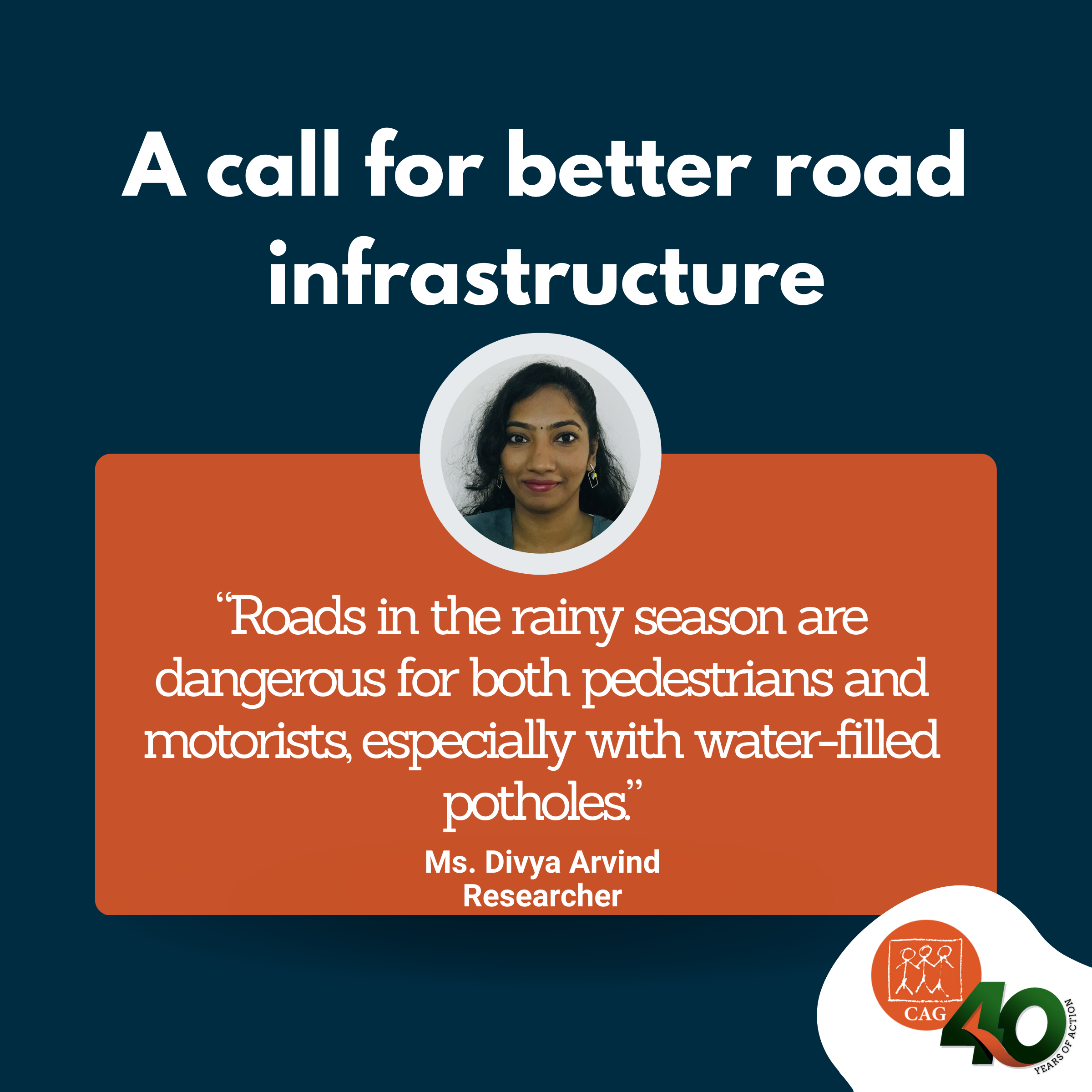 Who are our cities built for? Our road infrastructure is so inadequate that it poses a danger to both pedestrians and motorists. Road construction agencies are not held accountable for their poor work. In 2023 alone, there were 620 accidents and 159 fatalities linked to potholes in India. Road construction agencies being held accountable for poor roads with stringent repercussions, and proper, timely maintenance of road infrastructure can prevent such needless loss of lives.